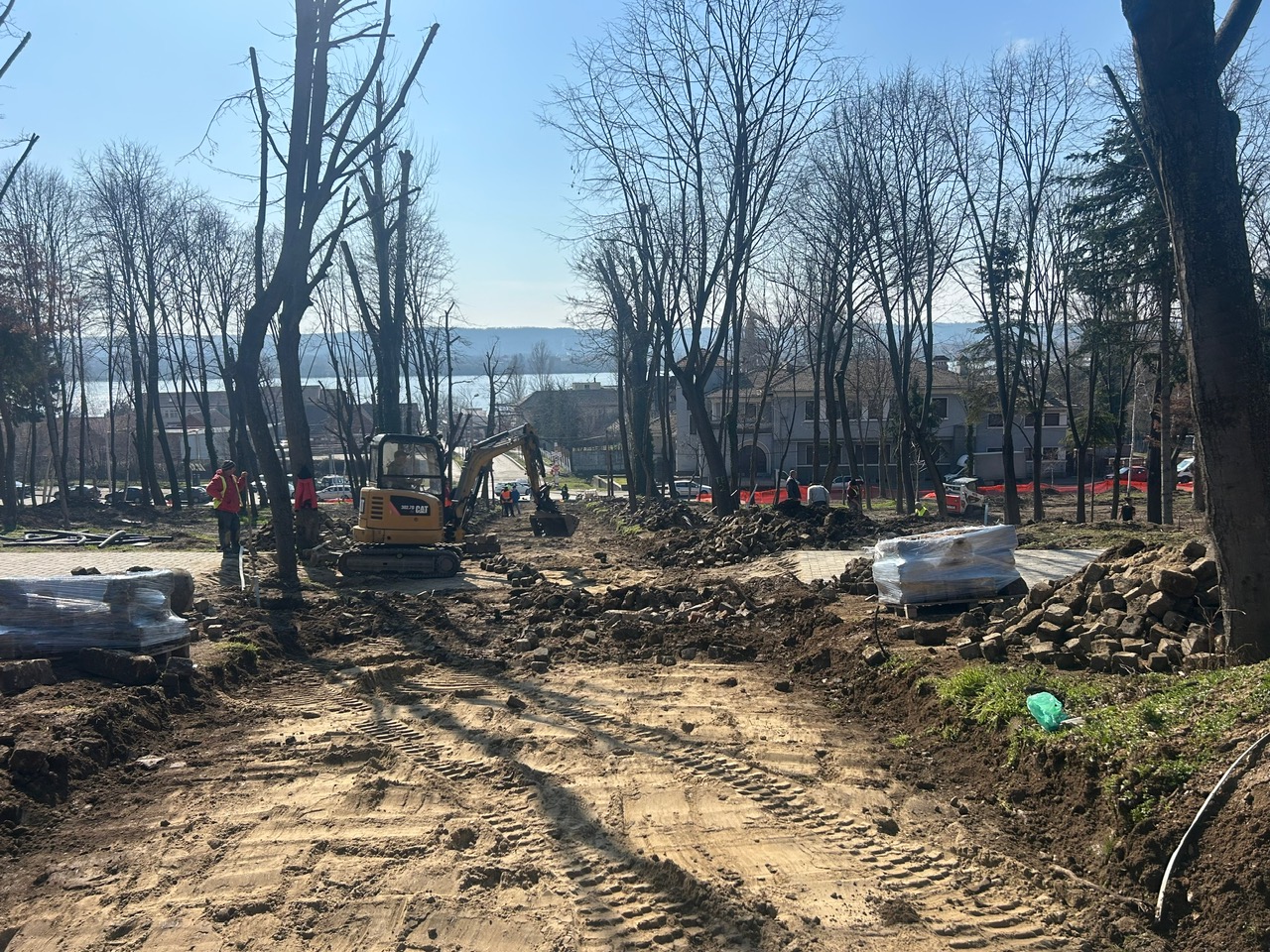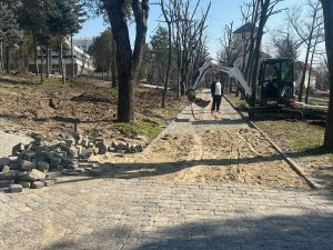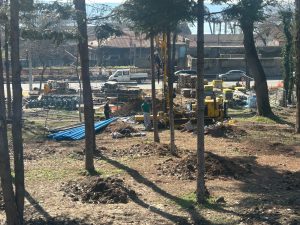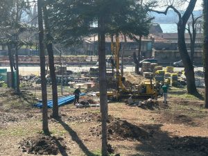 - Se fac săpături de foraj pentru puțul care va asigura debitul necesar funcționării aspersoarelor din parc.