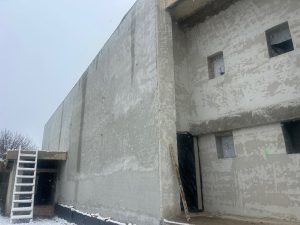 - Lucrări de tencuire a pereților exteriori ai aripii de est a imobilului;