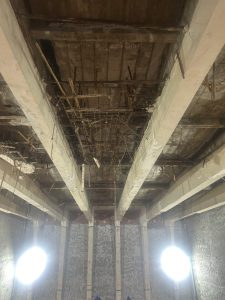 - S-au executat lucrări de izolație a acoperișului clădirii (terasa necirculabilă): a fost executat stratul de difuzie de bitum pe o suprafață de 1.000 mp; a fost aplicat stratul de polistiren extrudat în grosime de 10 cm, urmat de turnarea betonului și panta cu armătura de plasă sudată;