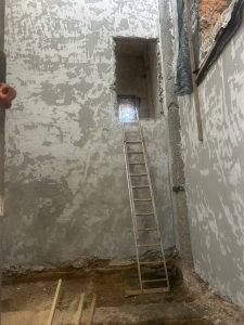 - S-au făcut lucrări de placare a pereților băilor de la parter;