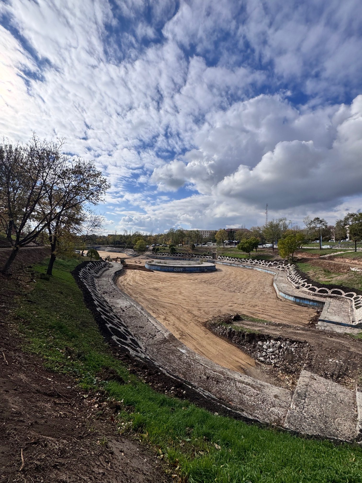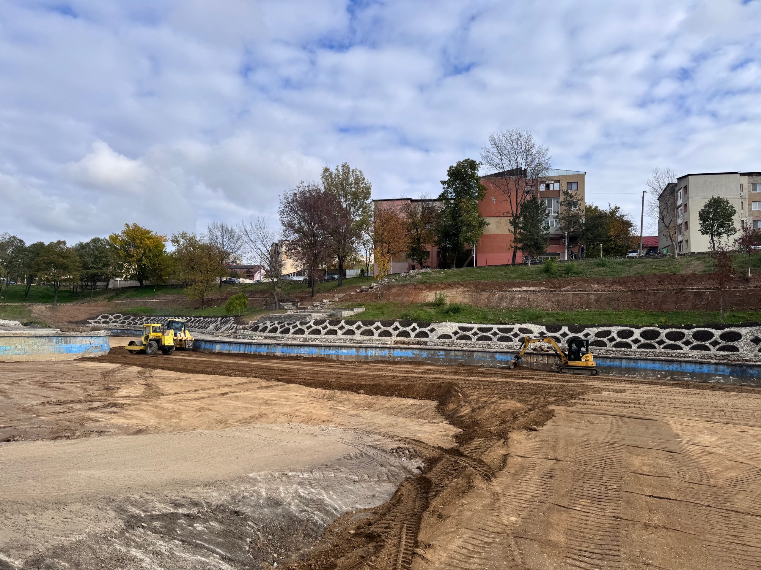 - Demolarea șanțului existent alăturat aleii pietonale și umplerea acesteia cu pământ până la cota terenului natural, spargerea betonului din interiorul nucleul central